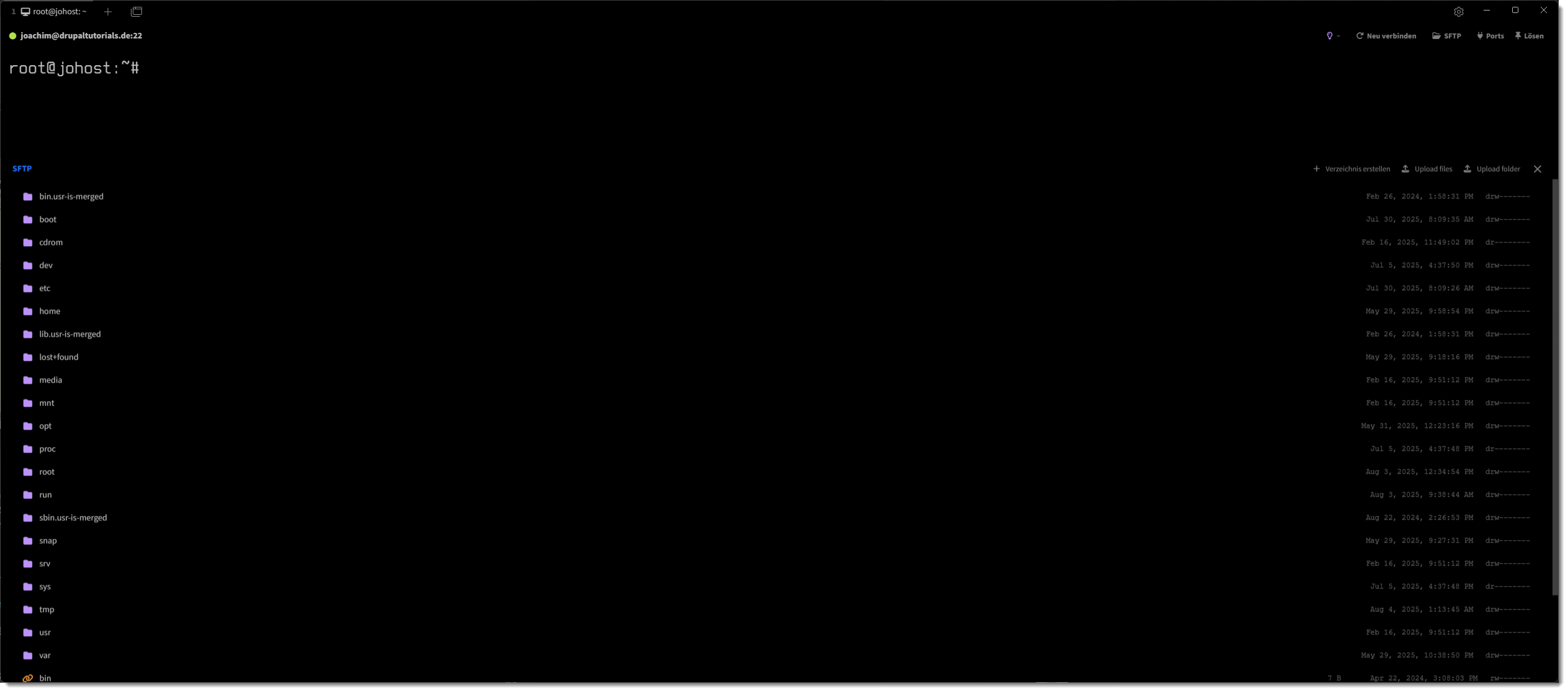 - Auch ganze Verzeichnisse lassen sich bequem übertragen – ideal für das Hochladen von Drupal-Modulen, Themes oder Backups.