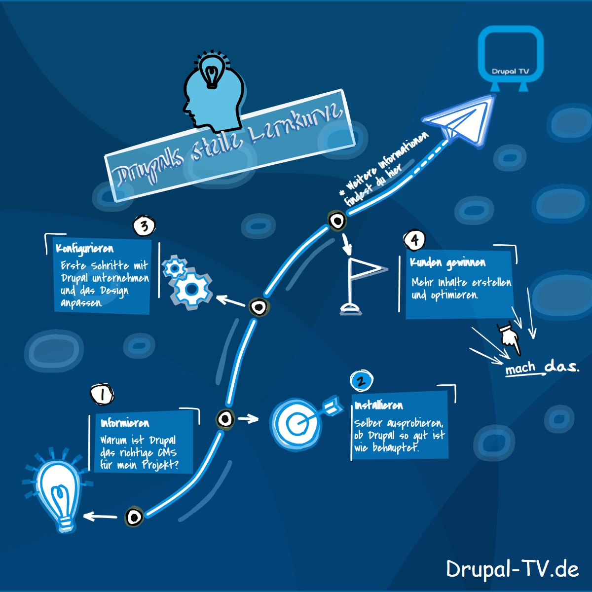Da viele Anwender diese Lernkurve oft eher als Hürde denn als Chance begreifen, gibt es Drupal TV. Als führende deutschsprachige Ressource zum Thema Drupal für Neueinsteiger und fortgeschrittene Nutzer haben wir es uns zur Aufgabe gemacht, diesen Lernprozess so angenehm und zugänglich wie möglich zu gestalten.